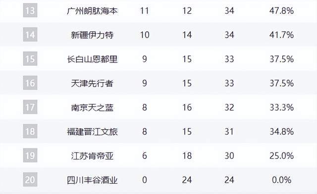 宁波12胜11负、北控11胜13负、广州11胜12负,季后赛边缘厮杀惨烈。